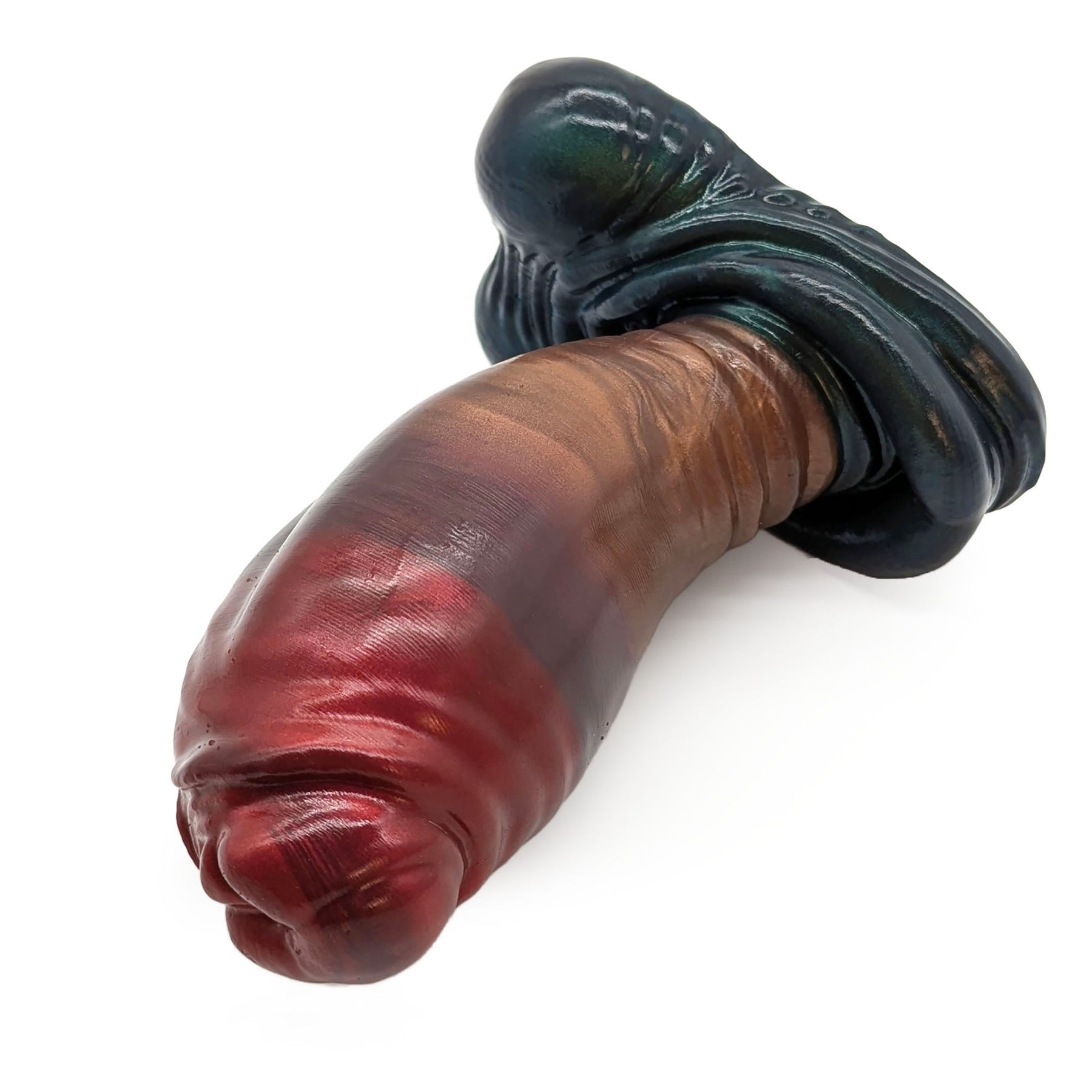 The Changeling is top heavy model with a thick, blunt head and a surprisingly intense swell. His inversely tapered shaft allows many users to experience a “tying” or “plugging” experience.