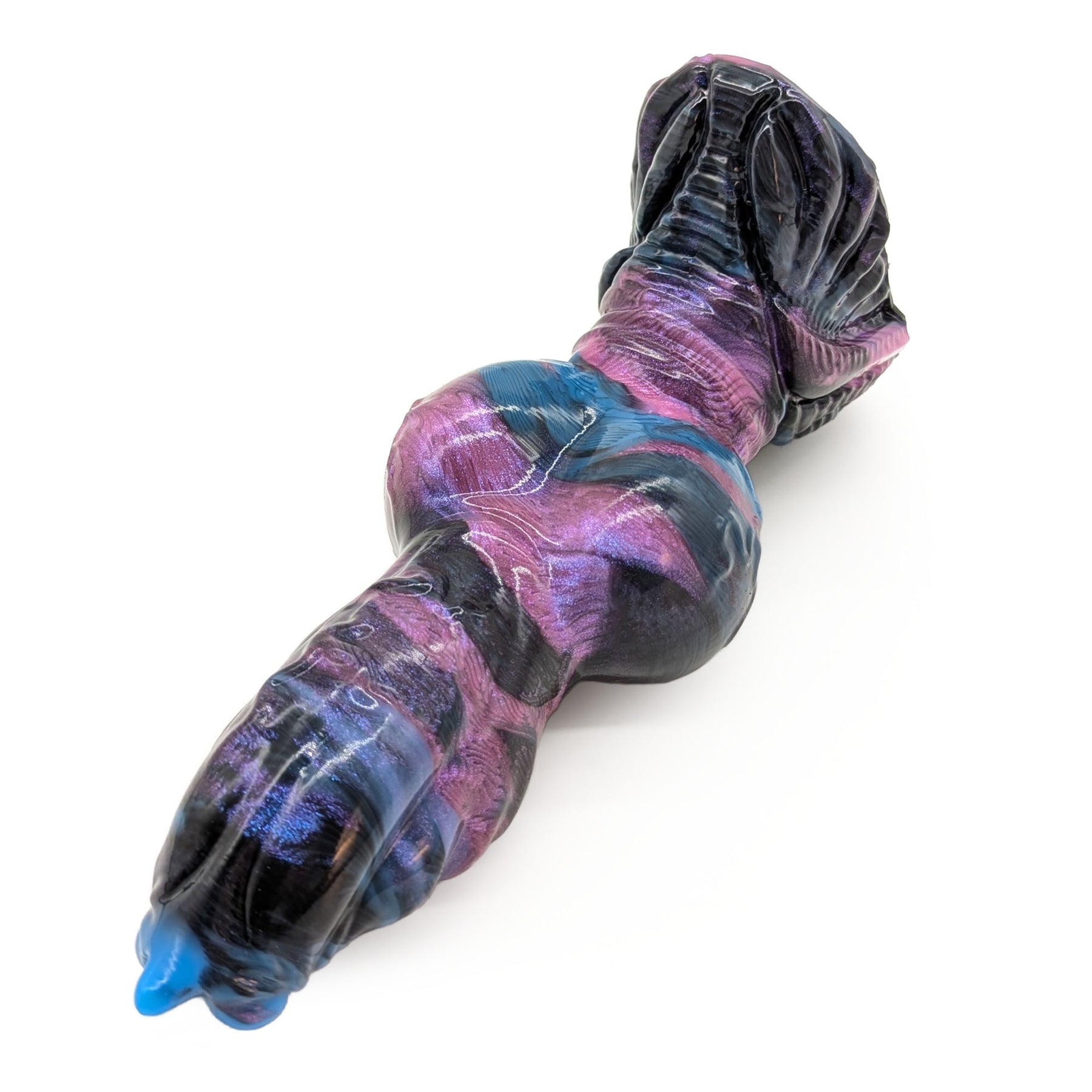 The long-awaited star-traveler finally makes his debut! Chigaru features an invitingly tapered, veined, lightly ribbed shaft with a delicious swell. His shaft culminates in an imposing horizontal knot, perched atop a lovingly detailed metallic and winged base with a prominently placed scarab gem.