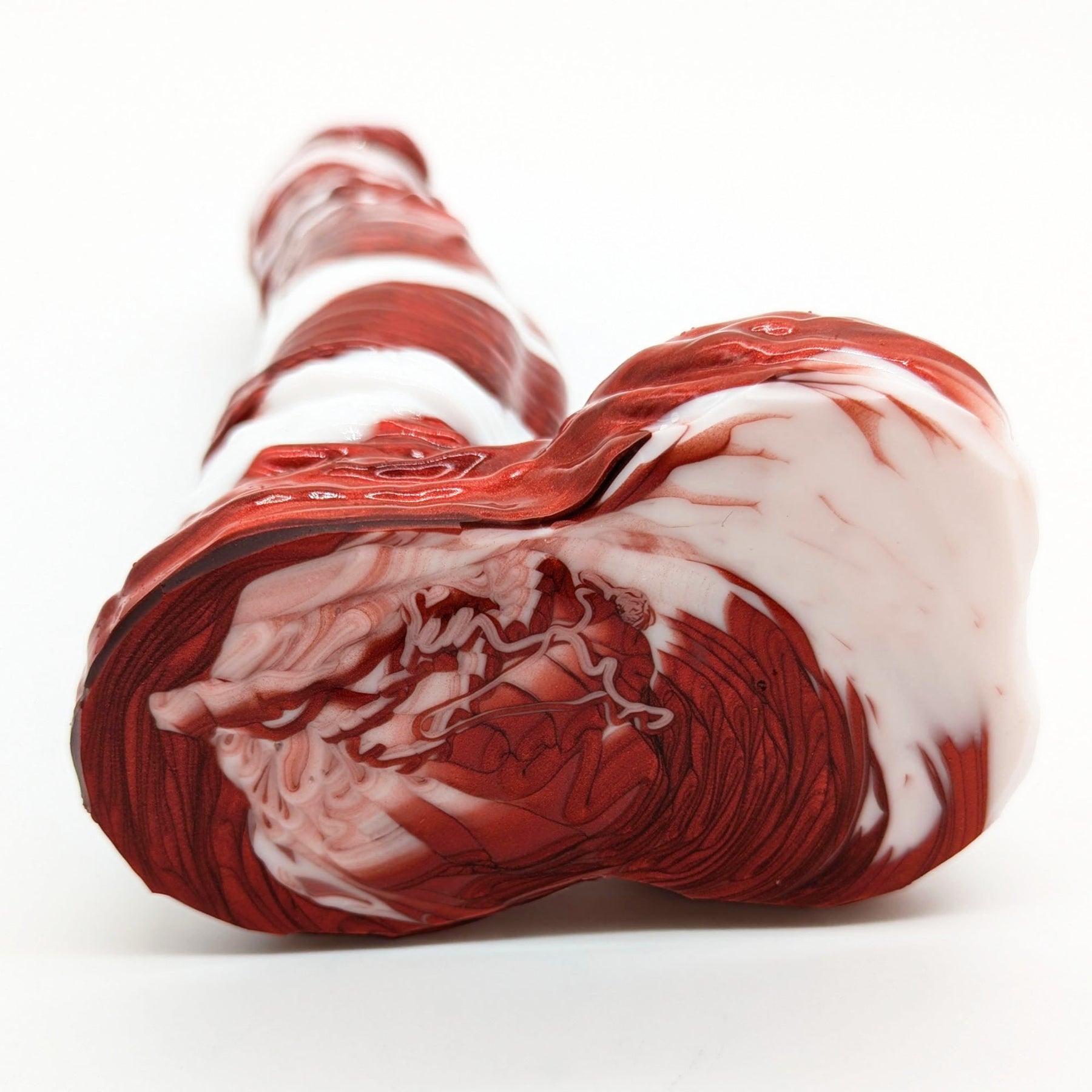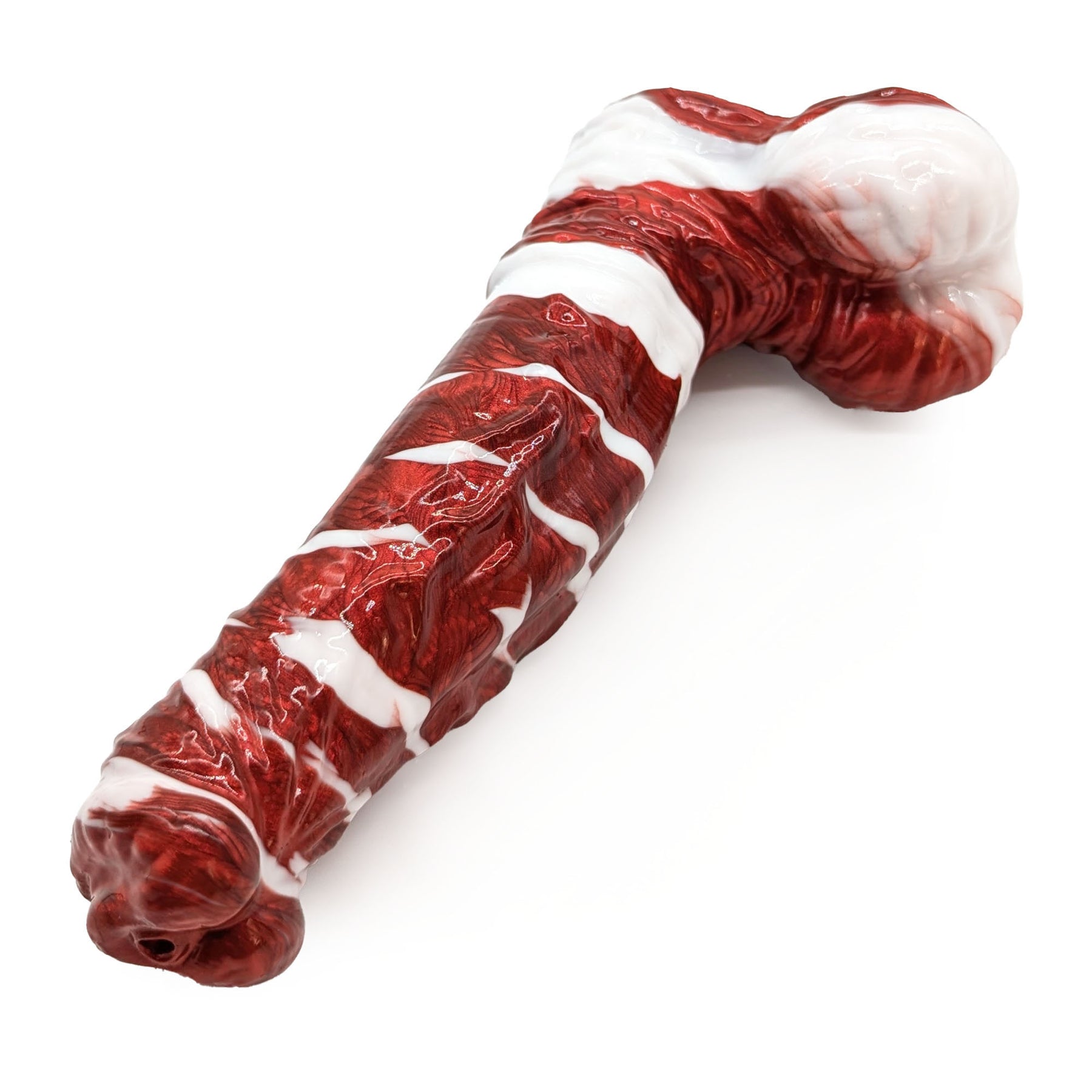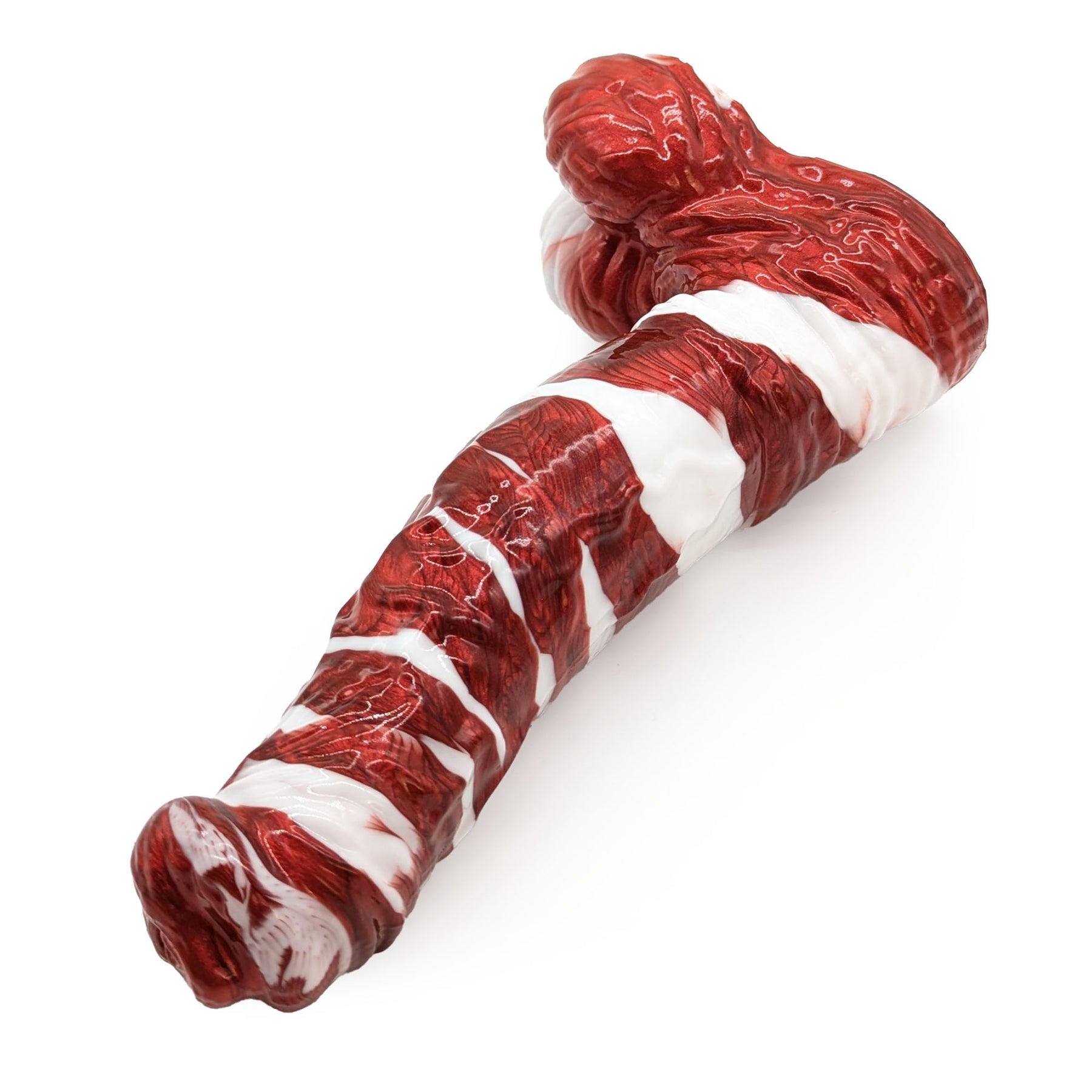 A towering figure, the Red Bull is a surprisingly beginner-friendly, if imposing, partner! Featuring a reversely flared head, deliciously veined shaft, and a wonderfully stout, wrinkly base, his smooth curves, lower swell, and mild texturing are sure to delight!