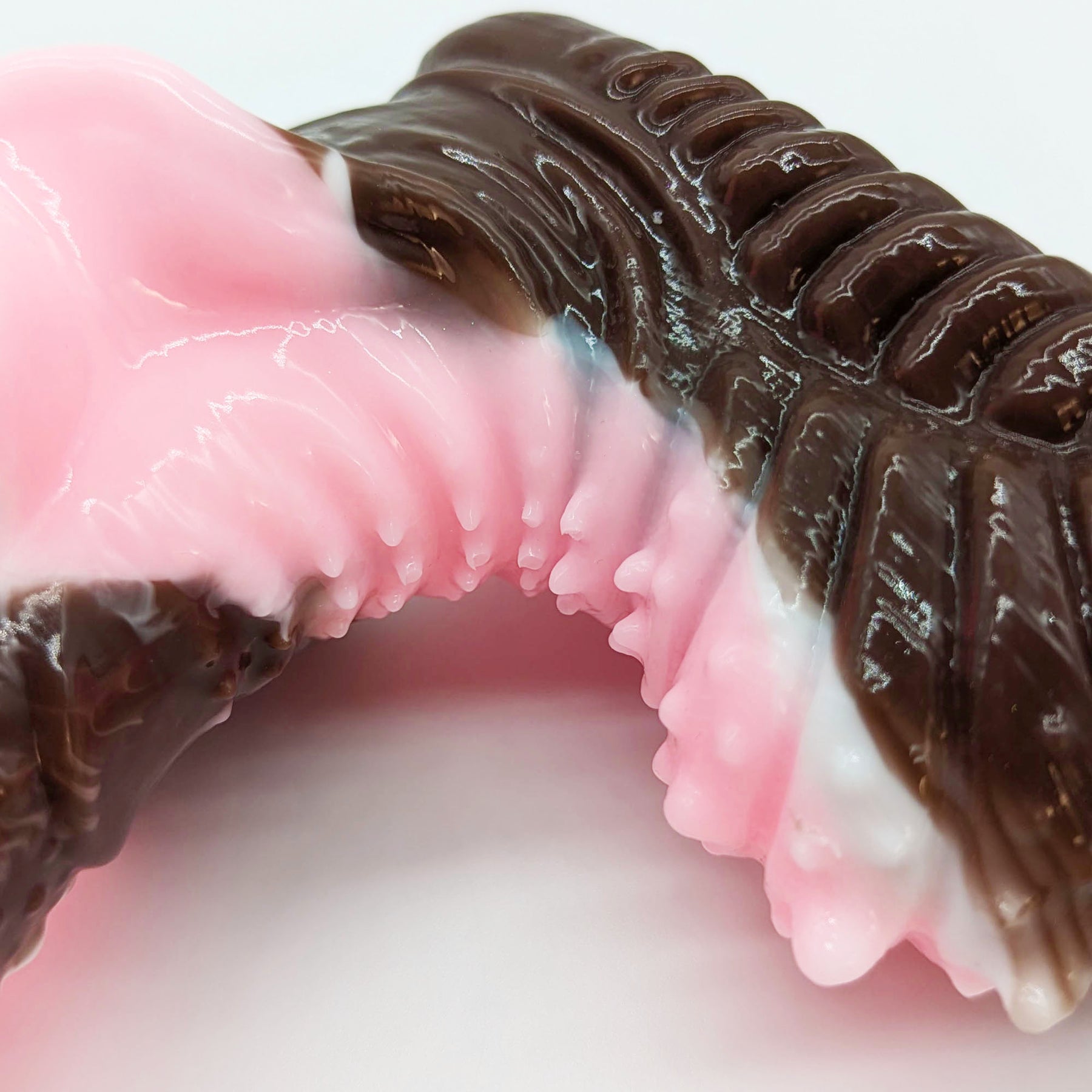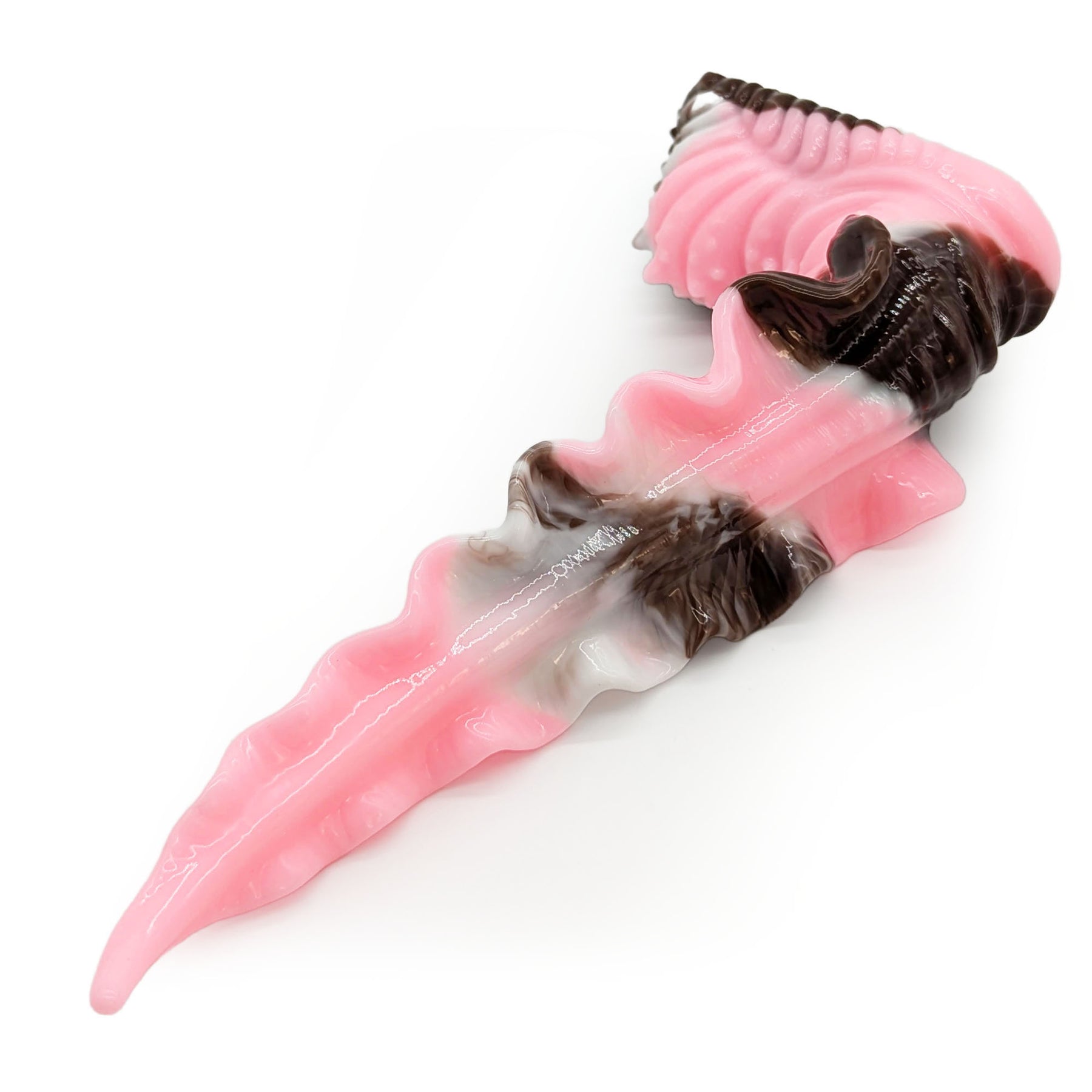A monstrous lover with a surprisingly gentle touch, Scylla is a peculiar take on the standard tentacle. With her delicately detailed, spiny base, Scylla presents an expanse of textures for tantalizing external stimulation. Her broad, rolling fins and tapered shaft make for a fun, if uniquely challenging, penetration toy as well.