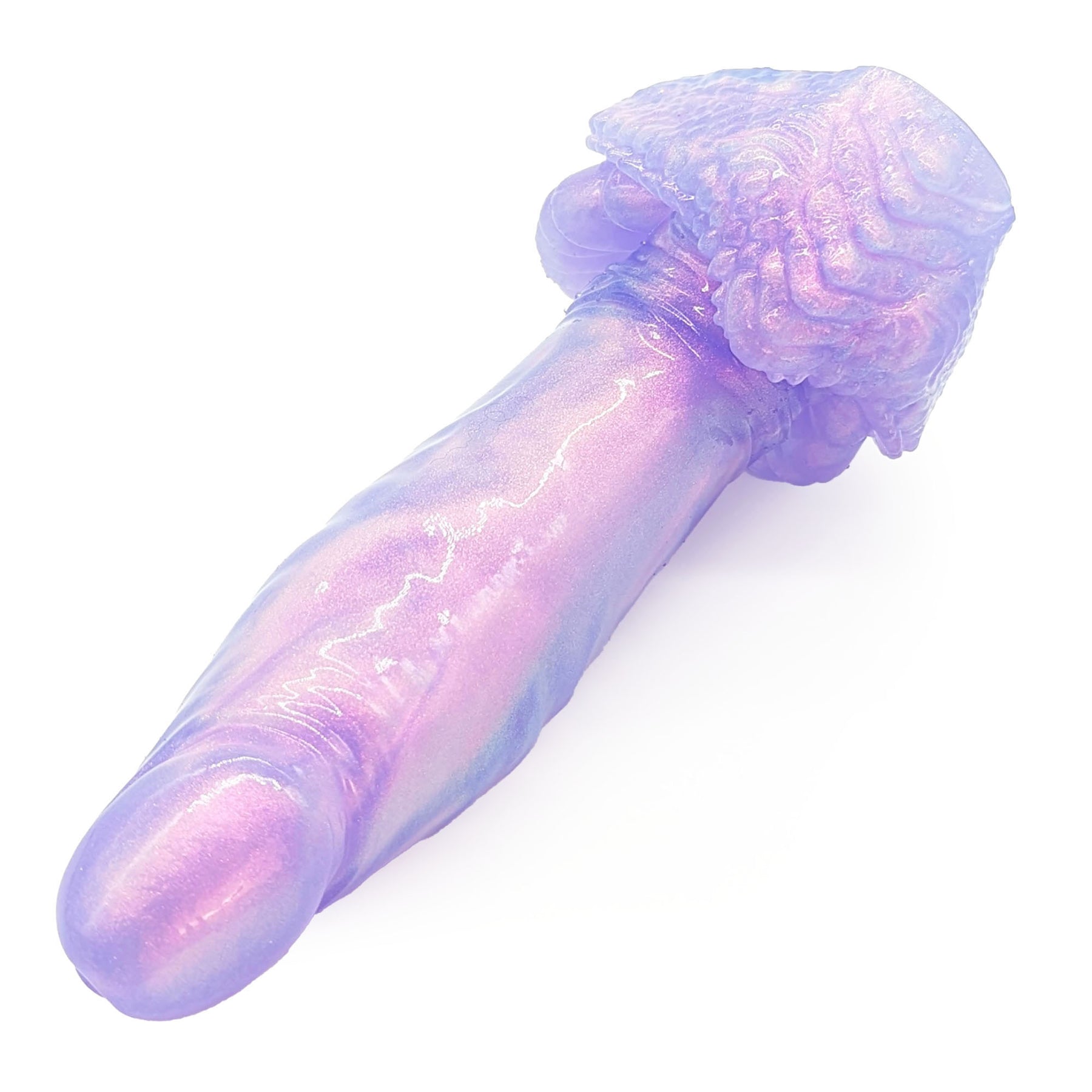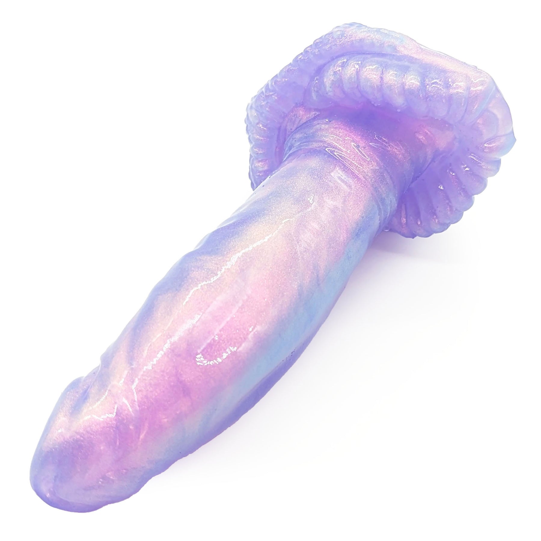 Arok is perfect for those looking for a smooth thrusting toy with a fantasy flare. His comfortably rounded head leads to a proud, straight shaft with very lightly textured veins and folds, plus a bit of gentle ribbing on his upper swell. His base is lovingly detailed with a plethora of textured scales, frills, and nubs.