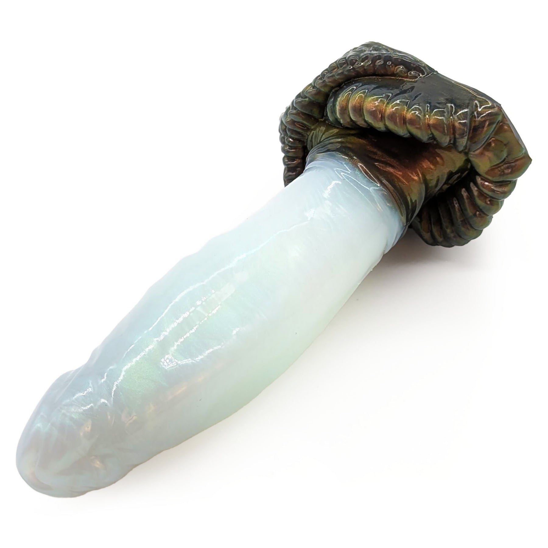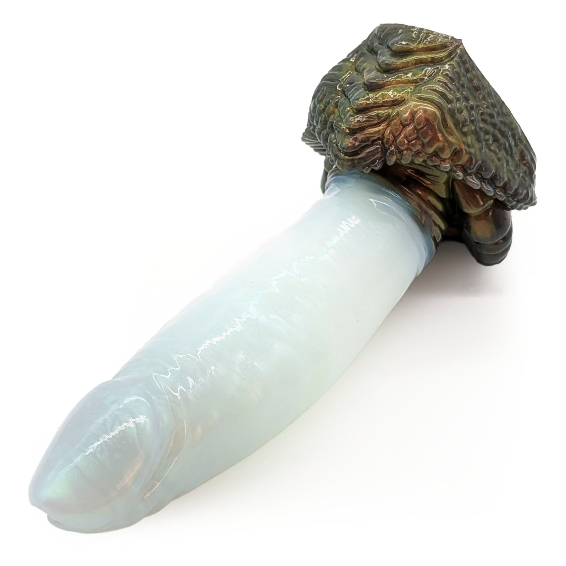 Arok is perfect for those looking for a smooth thrusting toy with a fantasy flare. His comfortably rounded head leads to a proud, straight shaft with very lightly textured veins and folds, plus a bit of gentle ribbing on his upper swell. His base is lovingly detailed with a plethora of textured scales, frills, and nubs.