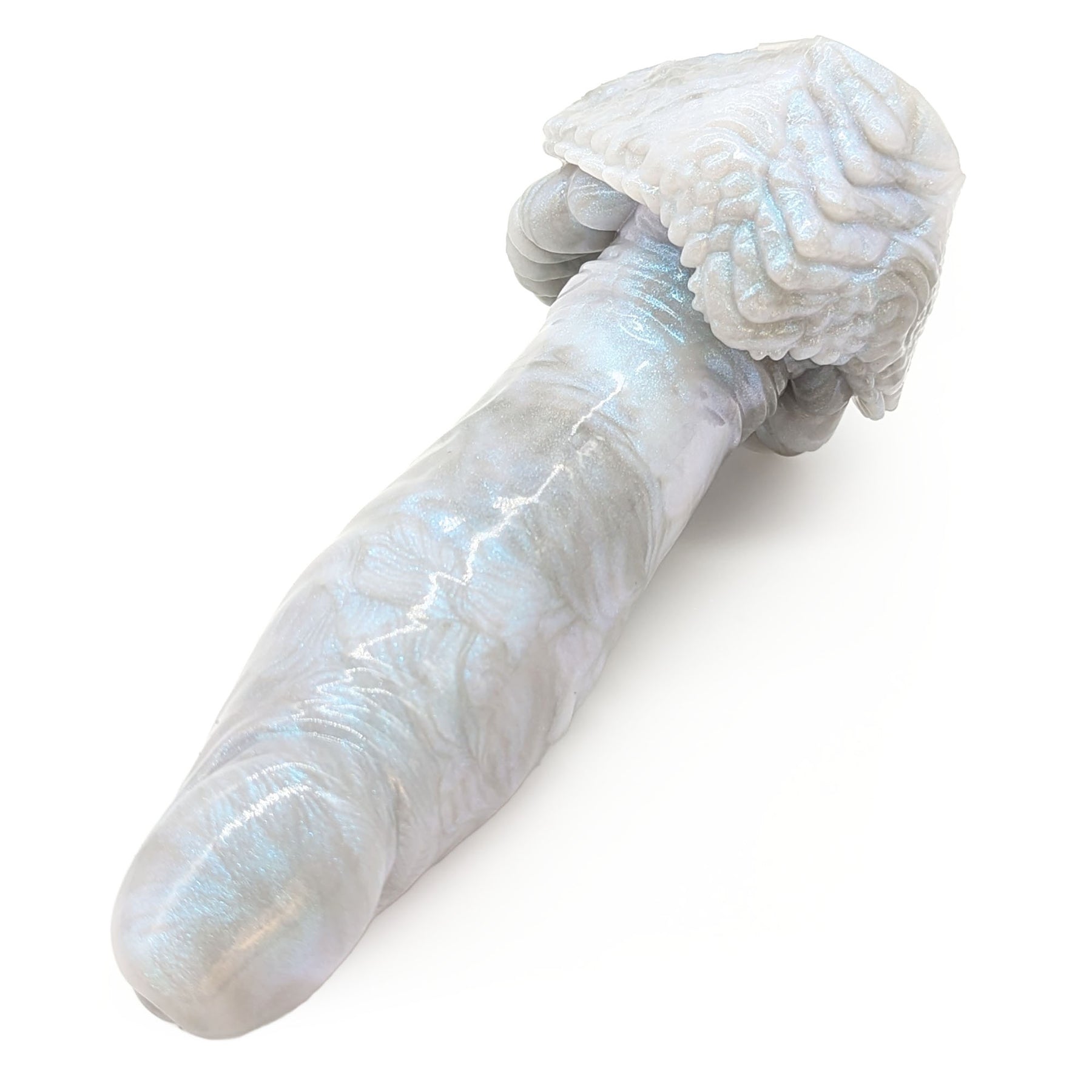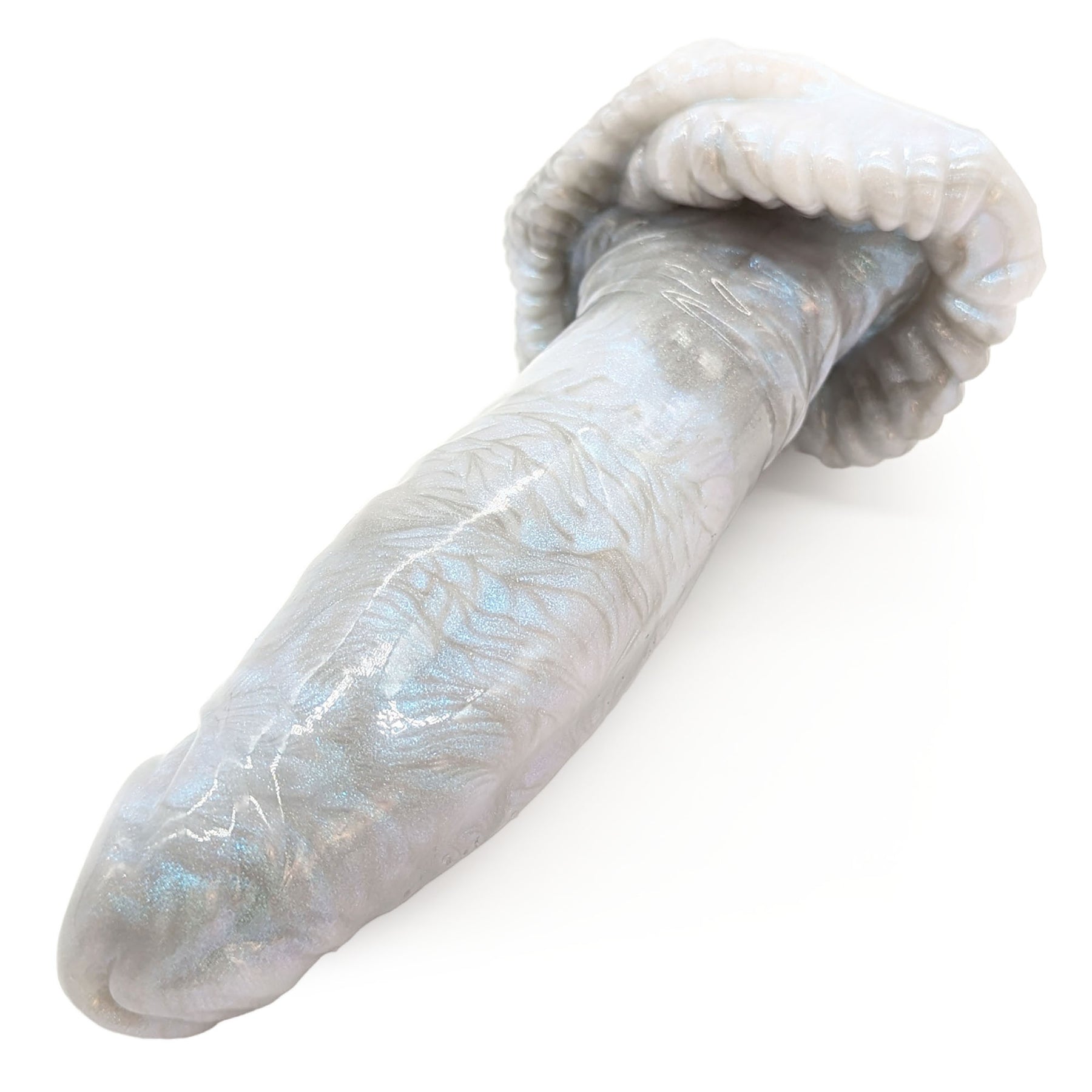 Arok is perfect for those looking for a smooth thrusting toy with a fantasy flare. His comfortably rounded head leads to a proud, straight shaft with very lightly textured veins and folds, plus a bit of gentle ribbing on his upper swell. His base is lovingly detailed with a plethora of textured scales, frills, and nubs.