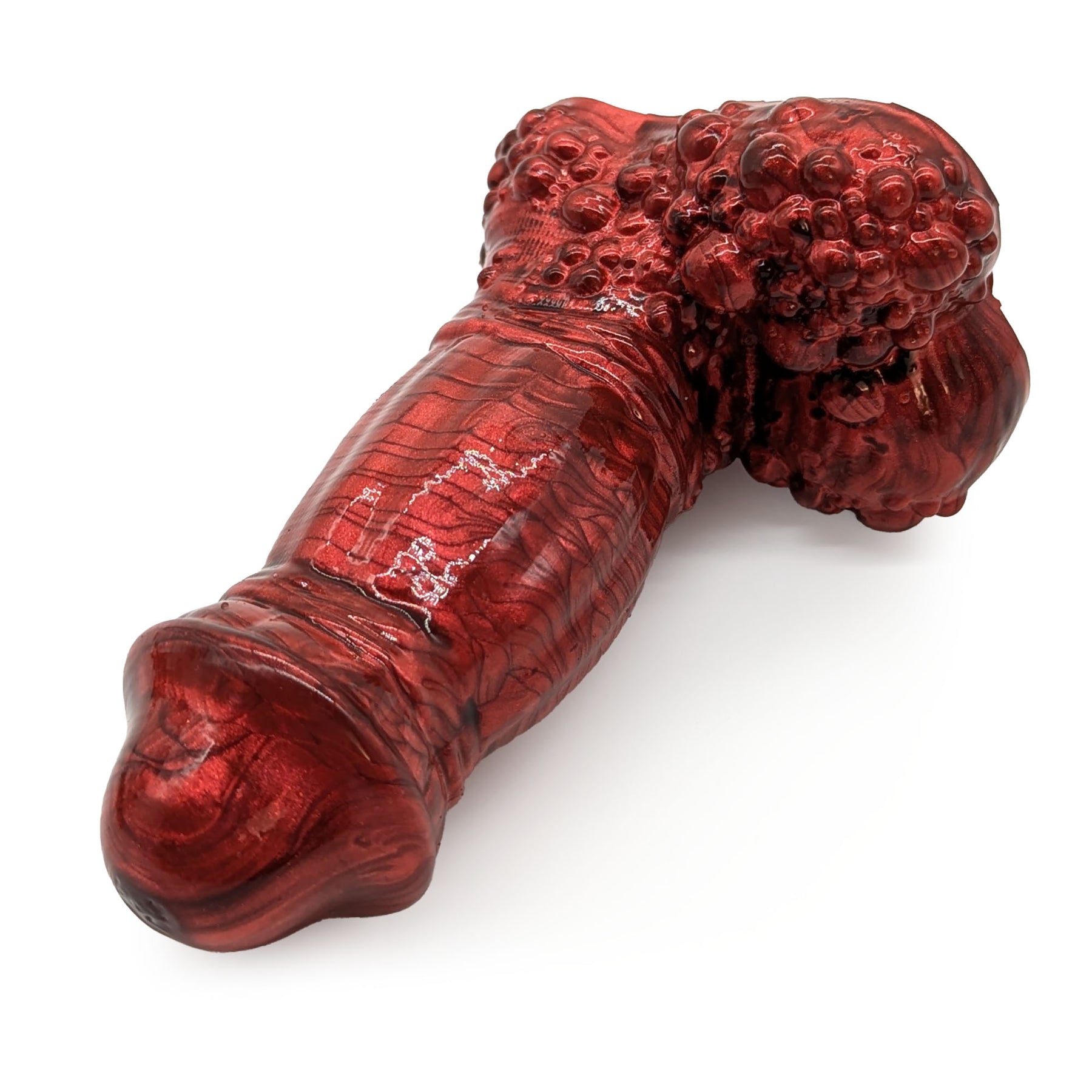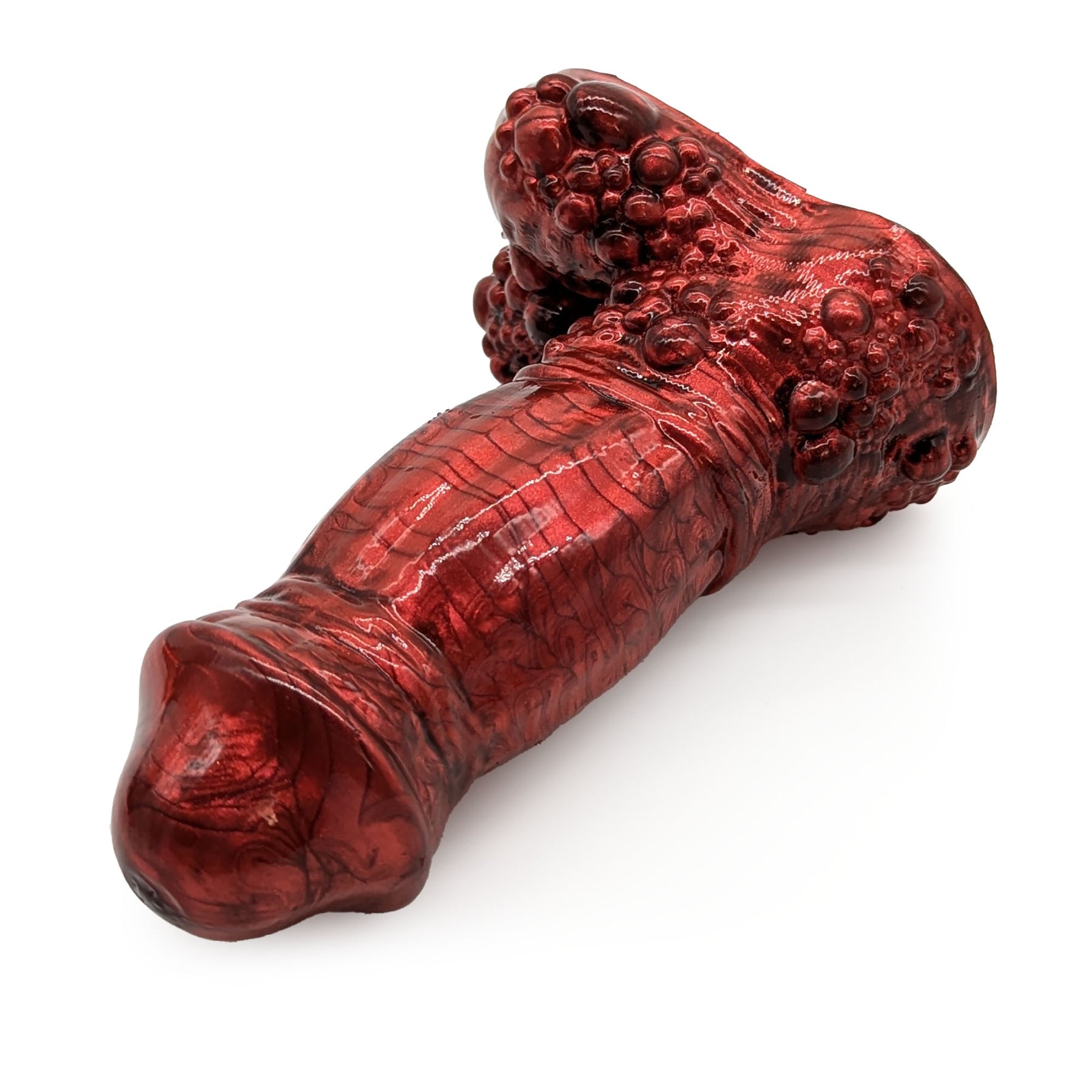 His thick, ribbed shaft is slightly curved with a gentle mid-shaft swell for some delicious push and pull. He ends in a fanciful carpet of mini-shrooms for added external stimulation.