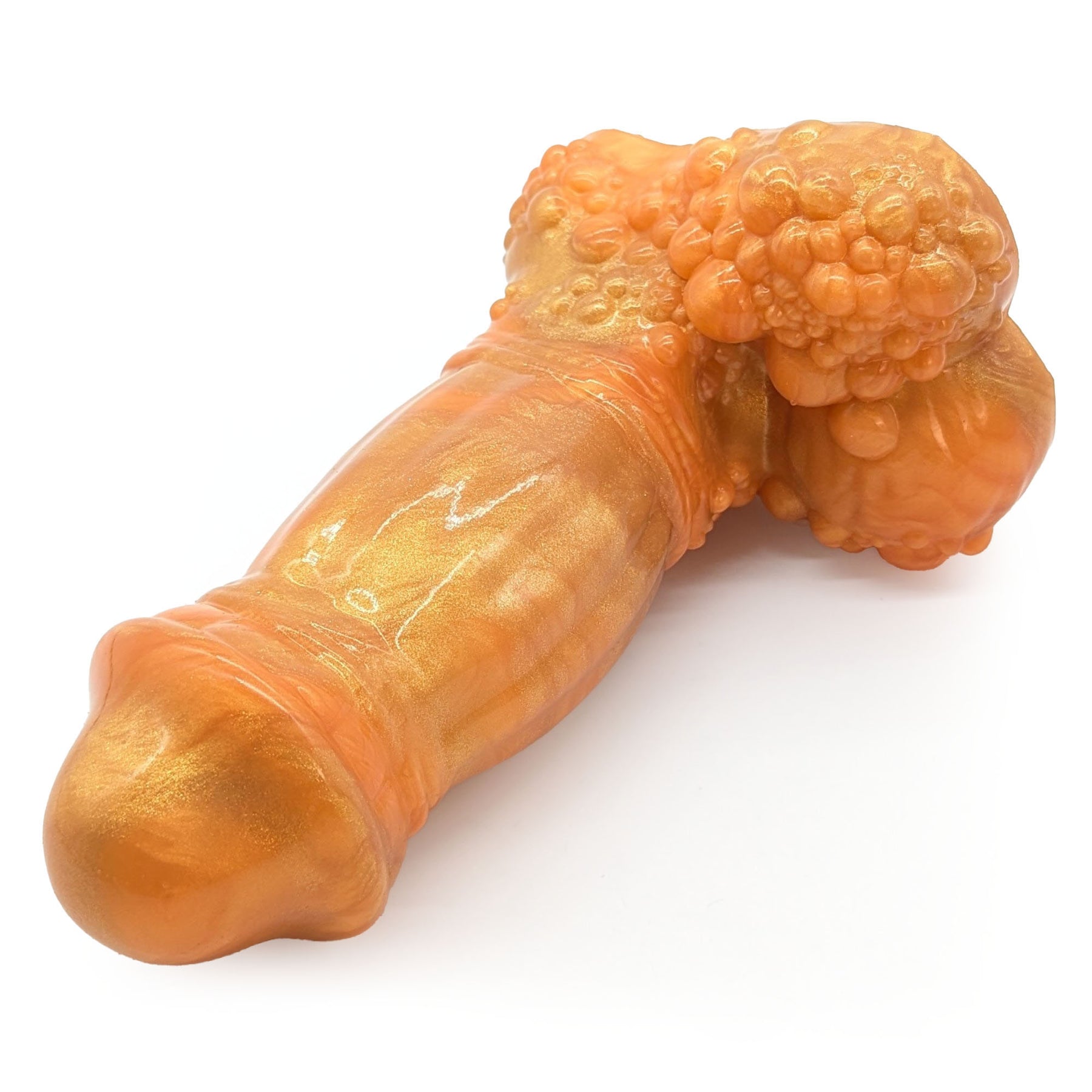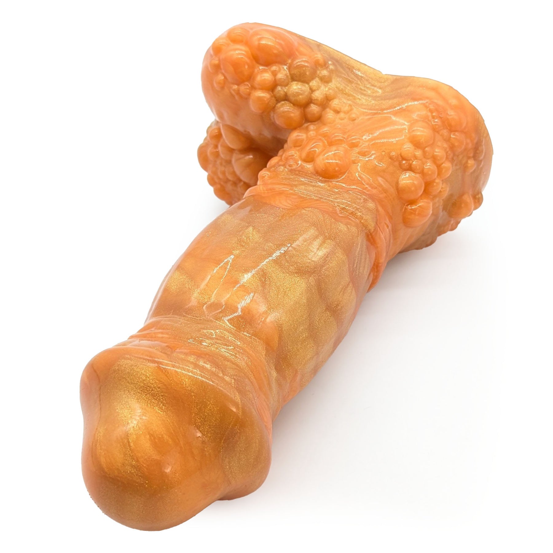 His thick, ribbed shaft is slightly curved with a gentle mid-shaft swell for some delicious push and pull. He ends in a fanciful carpet of mini-shrooms for added external stimulation.