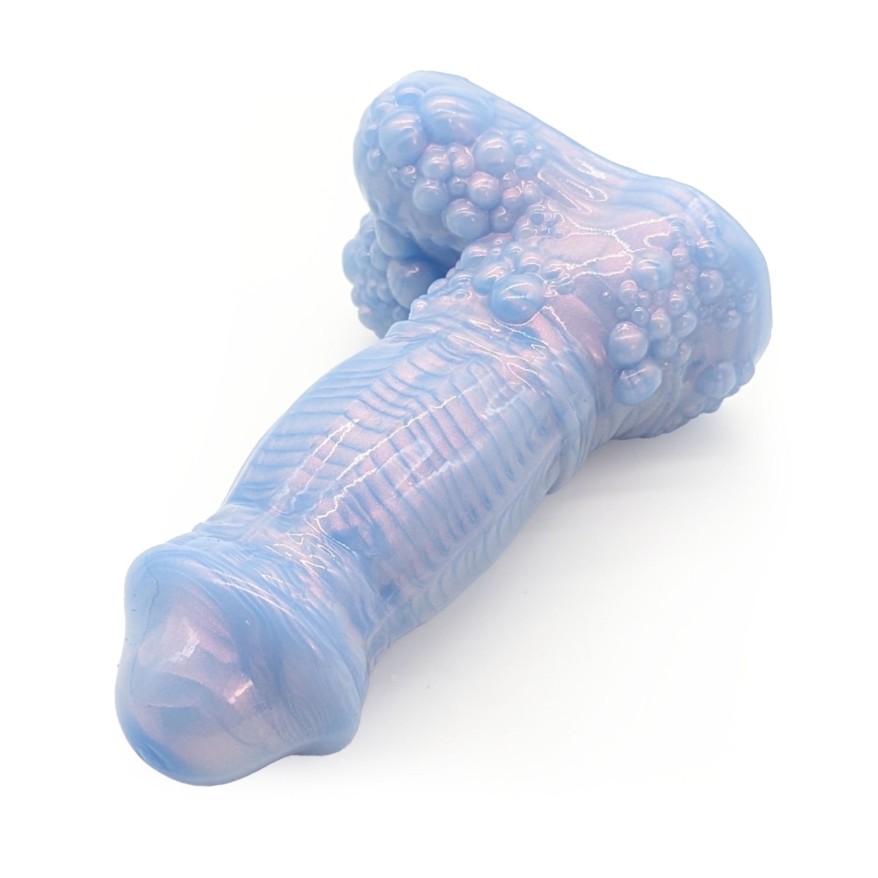 His thick, ribbed shaft is slightly curved with a gentle mid-shaft swell for some delicious push and pull. He ends in a fanciful carpet of mini-shrooms for added external stimulation.