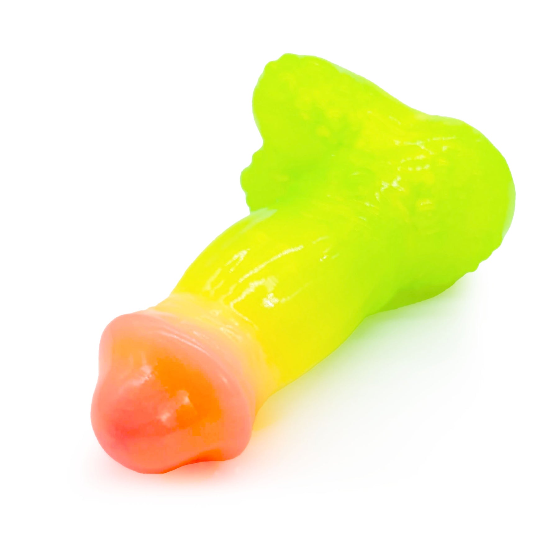 His thick, ribbed shaft is slightly curved with a gentle mid-shaft swell for some delicious push and pull. He ends in a fanciful carpet of mini-shrooms for added external stimulation.