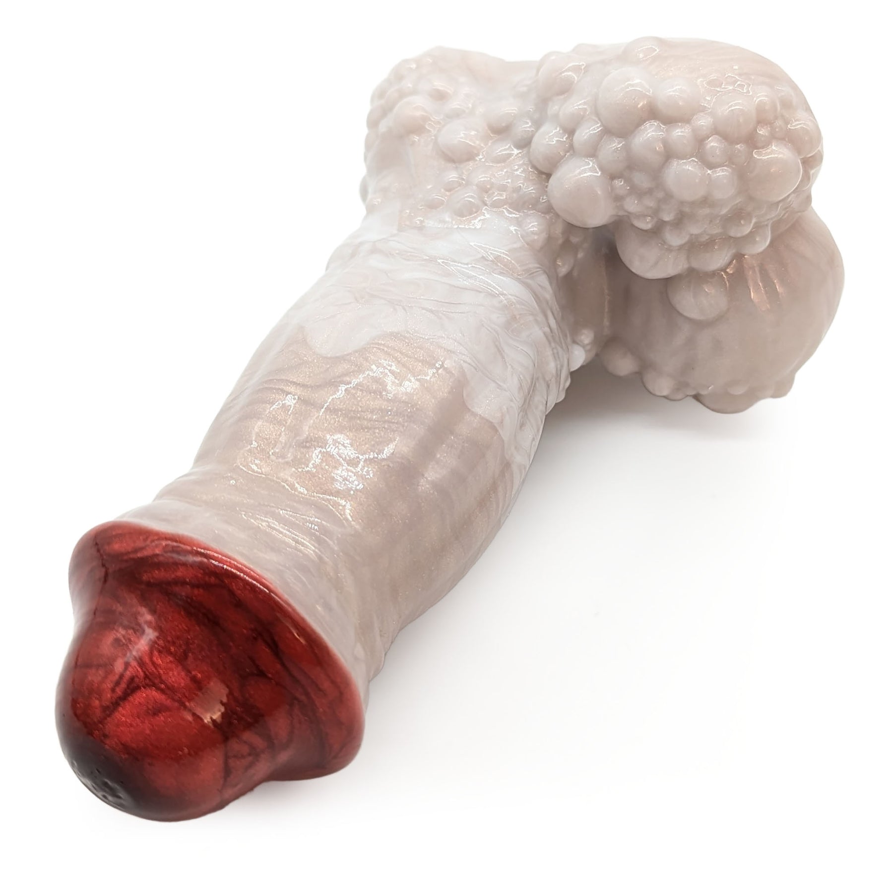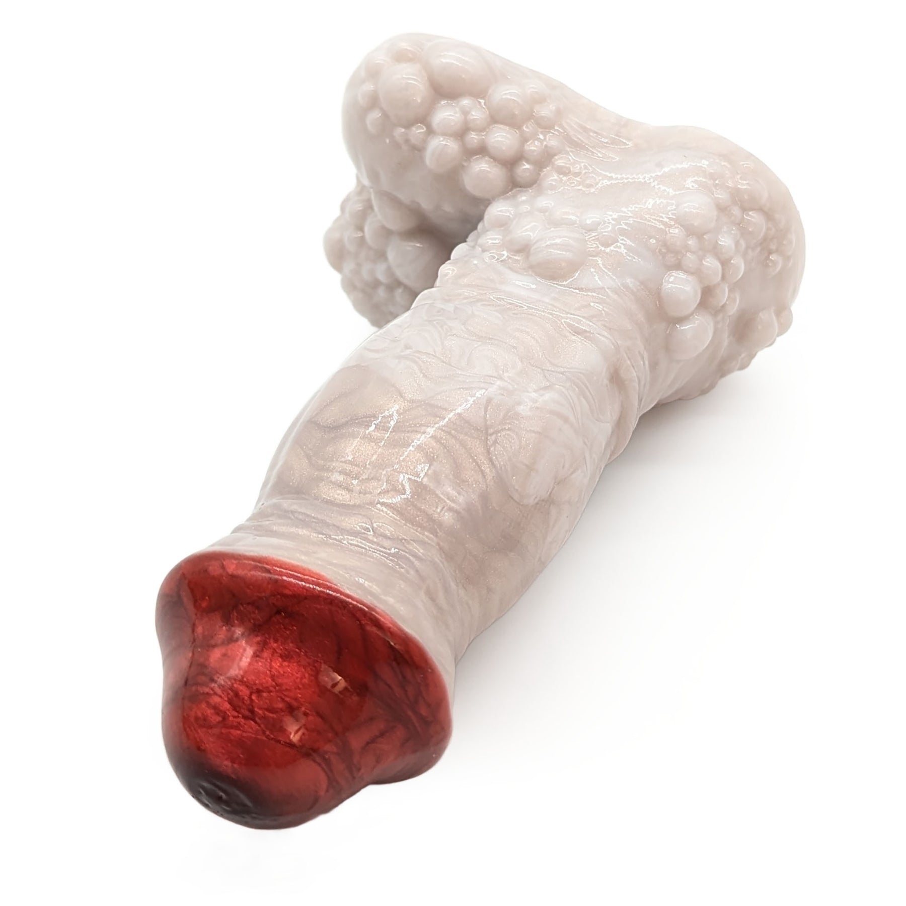His thick, ribbed shaft is slightly curved with a gentle mid-shaft swell for some delicious push and pull. He ends in a fanciful carpet of mini-shrooms for added external stimulation.