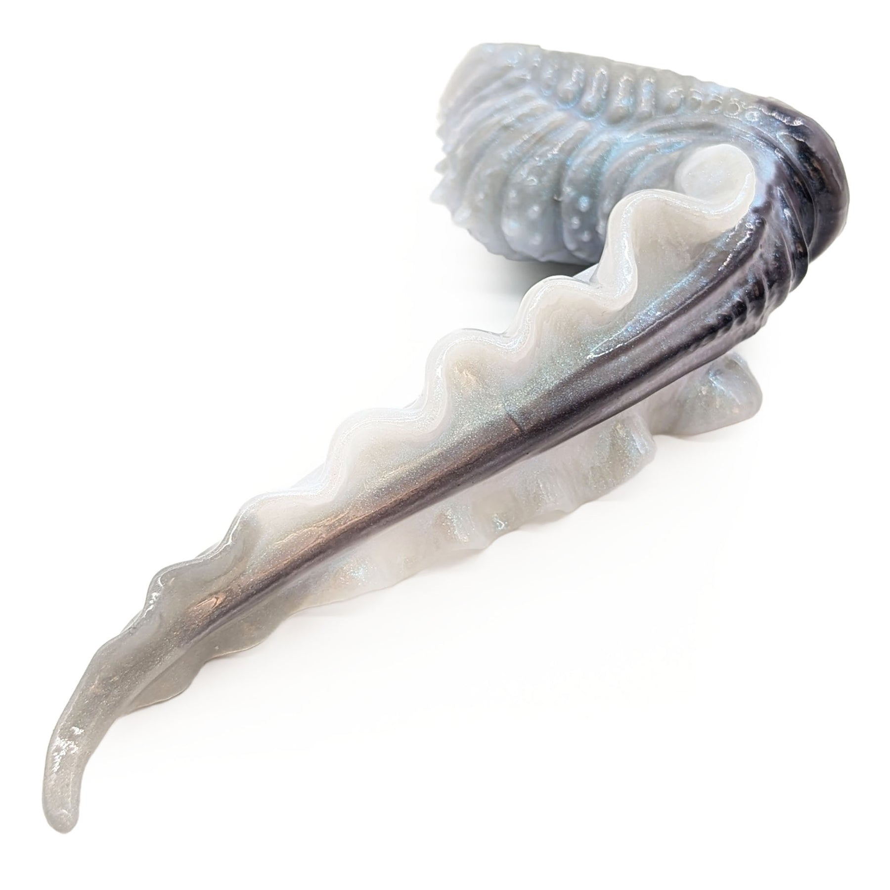 A monstrous lover with a surprisingly gentle touch, Scylla is a peculiar take on the standard tentacle. With her delicately detailed, spiny base, Scylla presents an expanse of textures for tantalizing external stimulation. Her broad, rolling fins and tapered shaft make for a fun, if uniquely challenging, penetration toy as well.