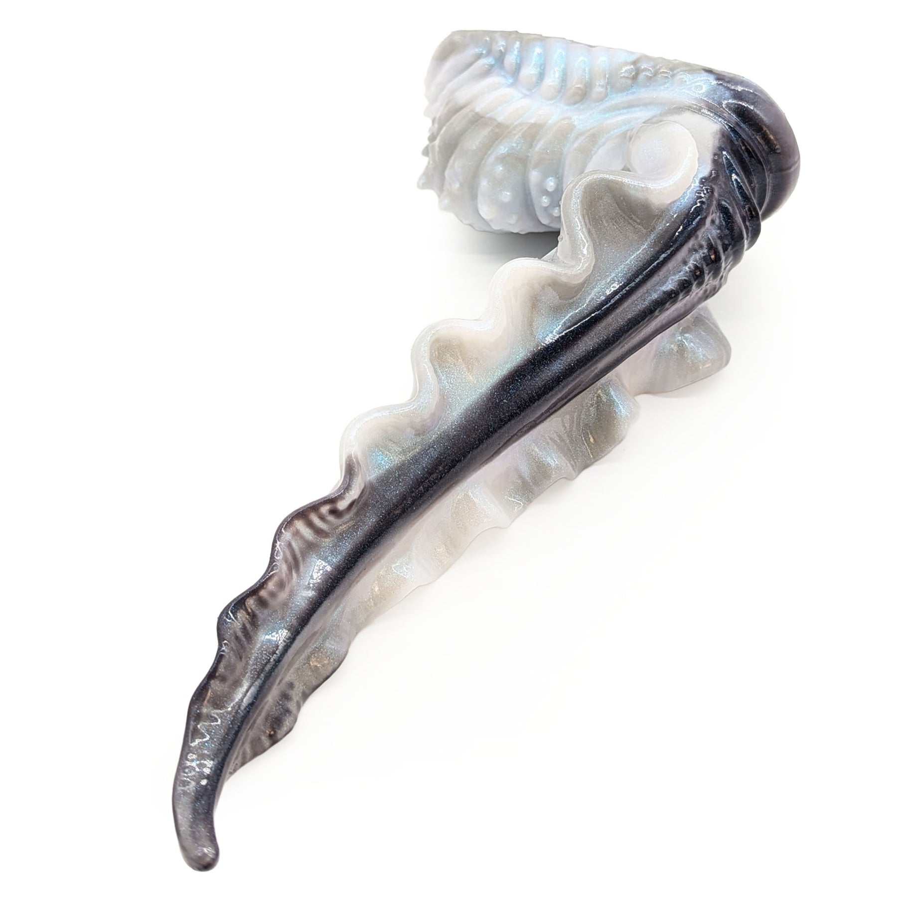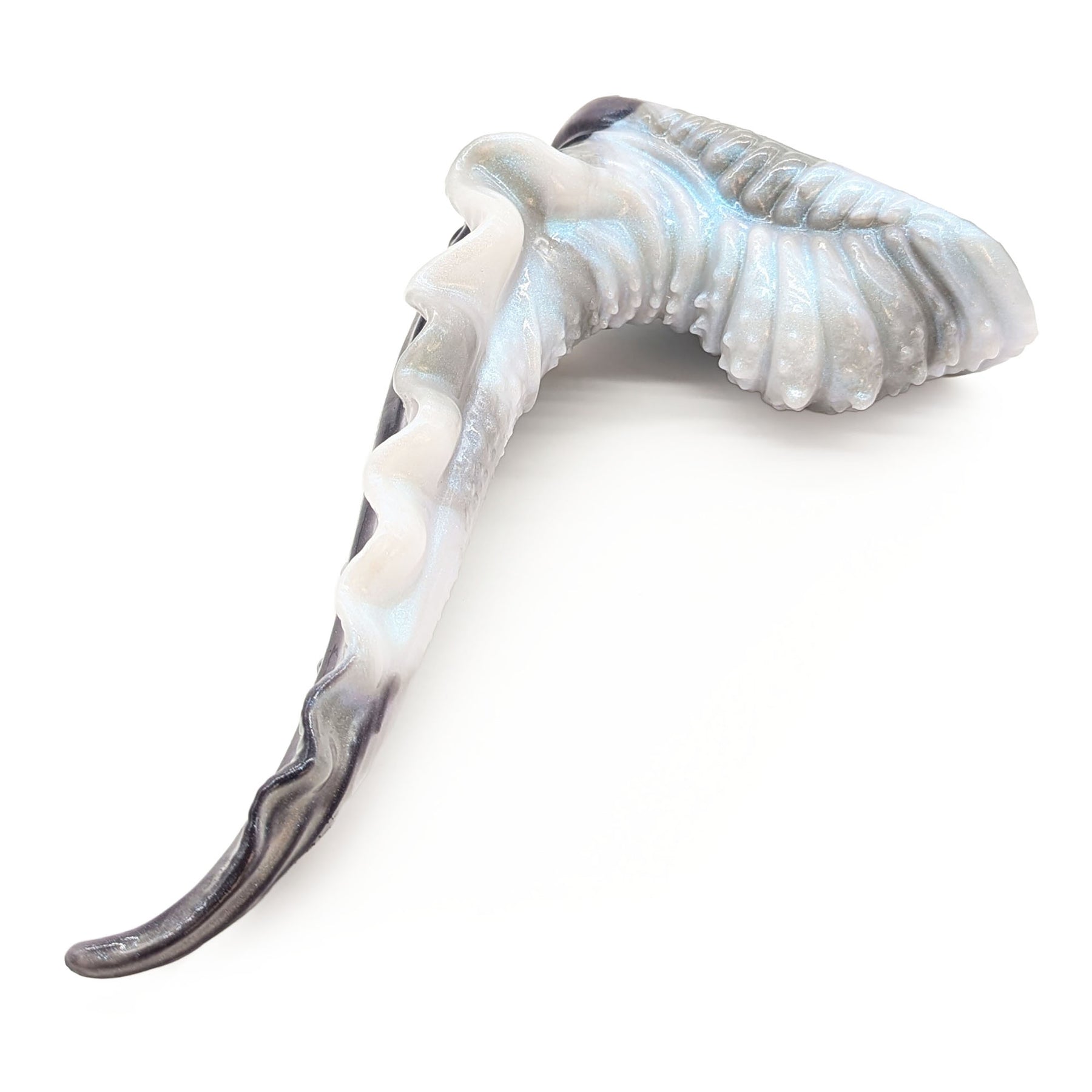 A monstrous lover with a surprisingly gentle touch, Scylla is a peculiar take on the standard tentacle. With her delicately detailed, spiny base, Scylla presents an expanse of textures for tantalizing external stimulation. Her broad, rolling fins and tapered shaft make for a fun, if uniquely challenging, penetration toy as well.